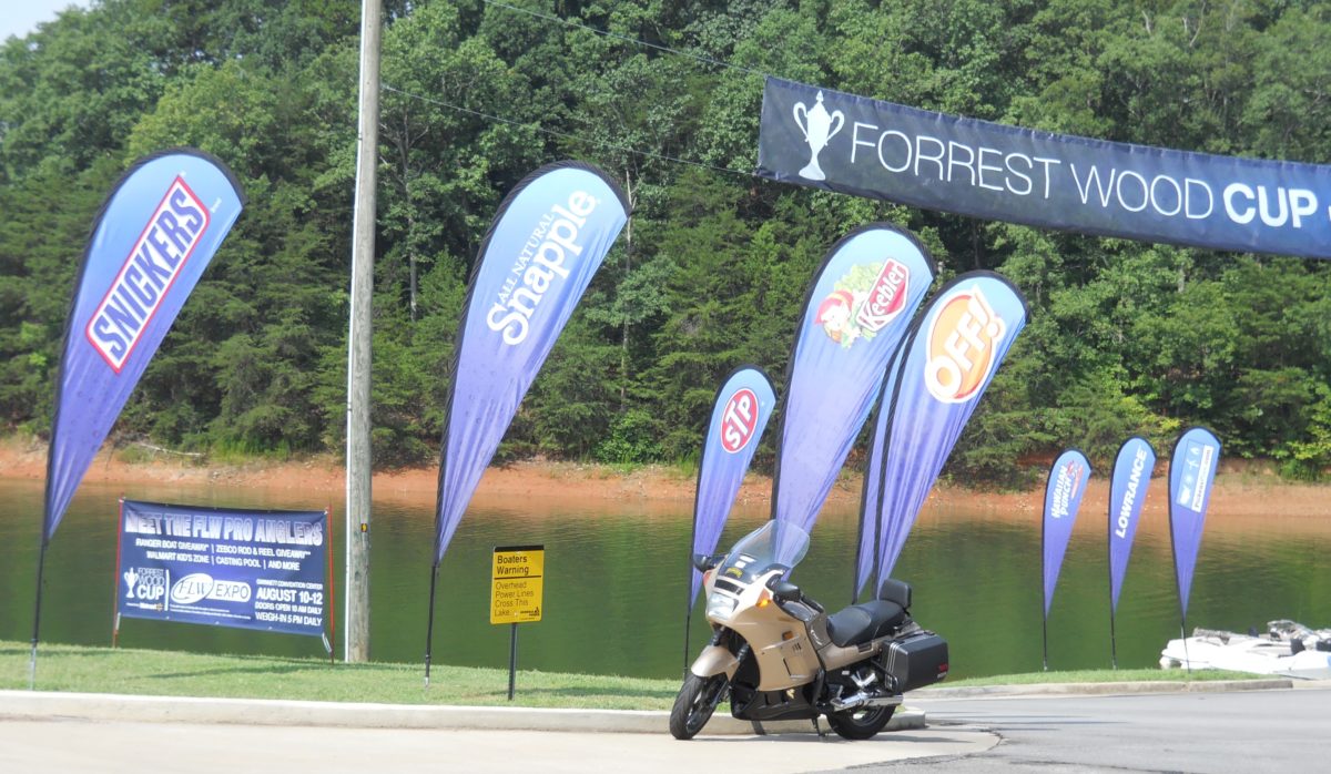 My motorcycle — Grasshopper, the humble ninja — can perform many feats; it cannot, however, go very far into Lake Lanier to help me take pictures of bass boats. So, we took pictures of the bass pro’s SUVs, the empty display units and the clear boat ramps. We hope you will enjoy our artistry as much as we enjoyed our good night’s sleep.