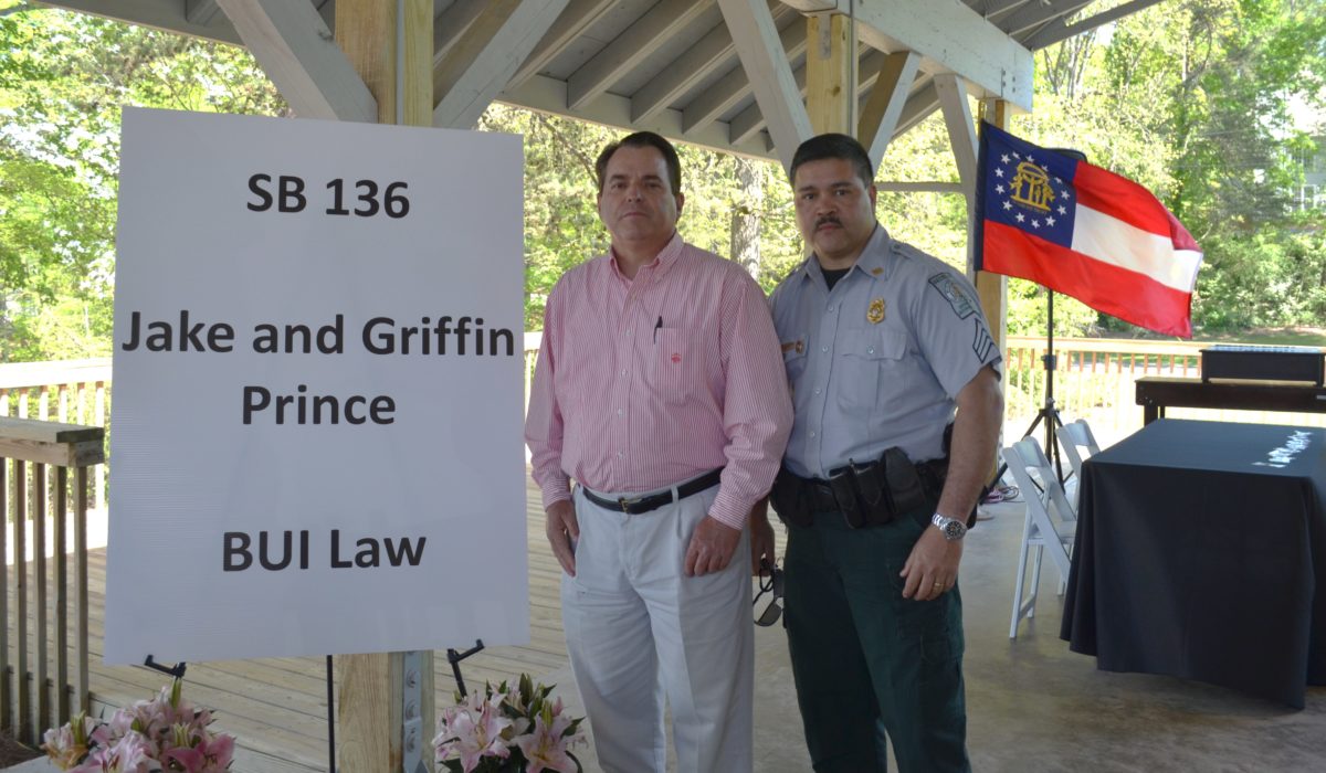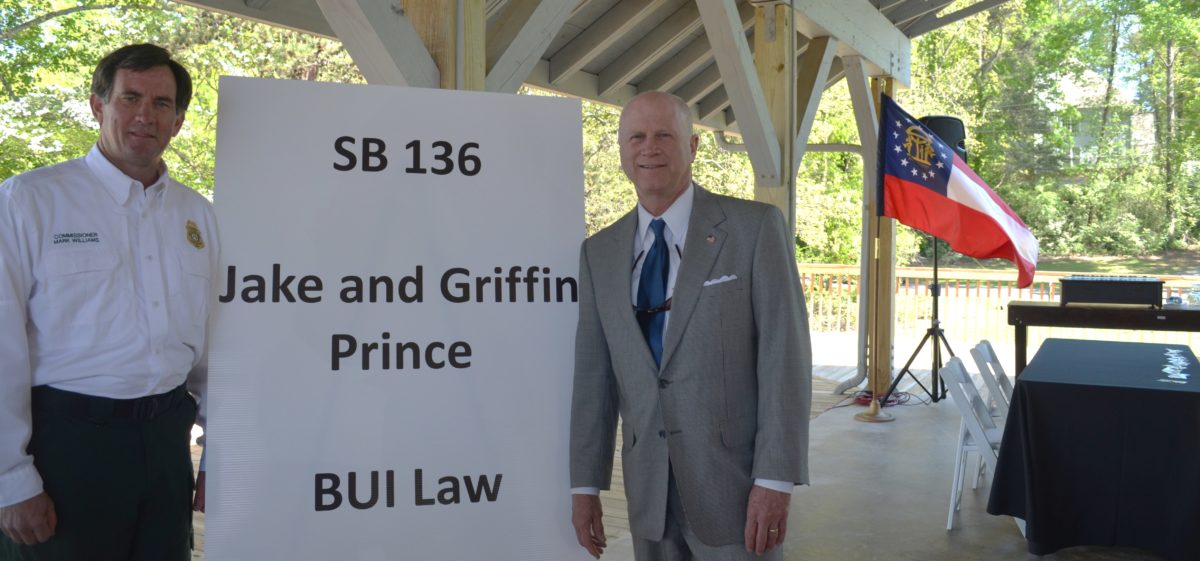 Many law enforcement officials, politicians and members of the families of Kile Glover and Jake & Griffin Prince — young men who lost their lives in 2012 due to boating accidents on Lake Lanier — attended the signing of the legislation.