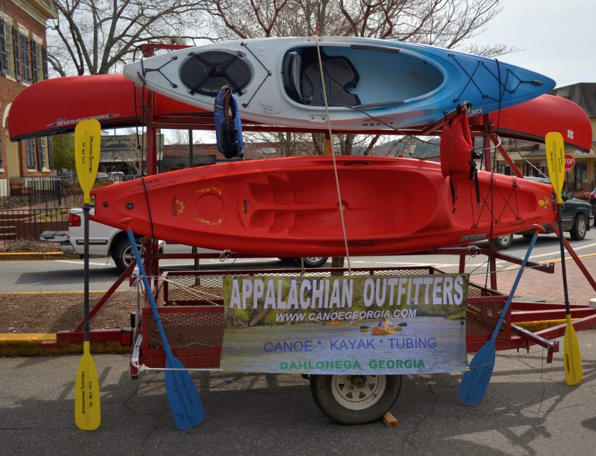 You’d be surprised how handy these kayaks would be when it rains on the Appalachian Trail. Appalachian Outfitters supports Trail Fest 2014. ~~ Photograph by Robert Sutherland
