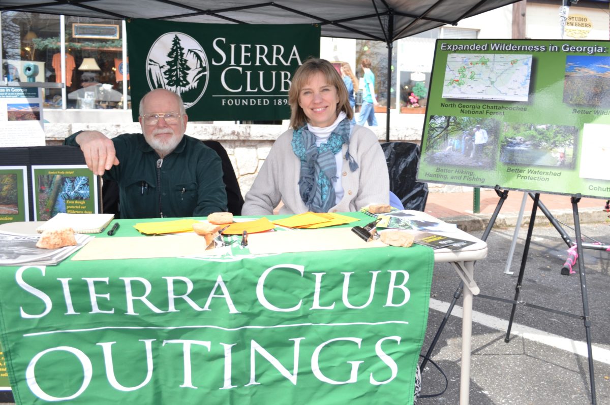 Volunteers from the Sierra Club. On the left is a man named Tom. On the right is Michelle Kegler at Dahlonega Trail Fest 2014. ~~ Photograph by Robert Sutherland