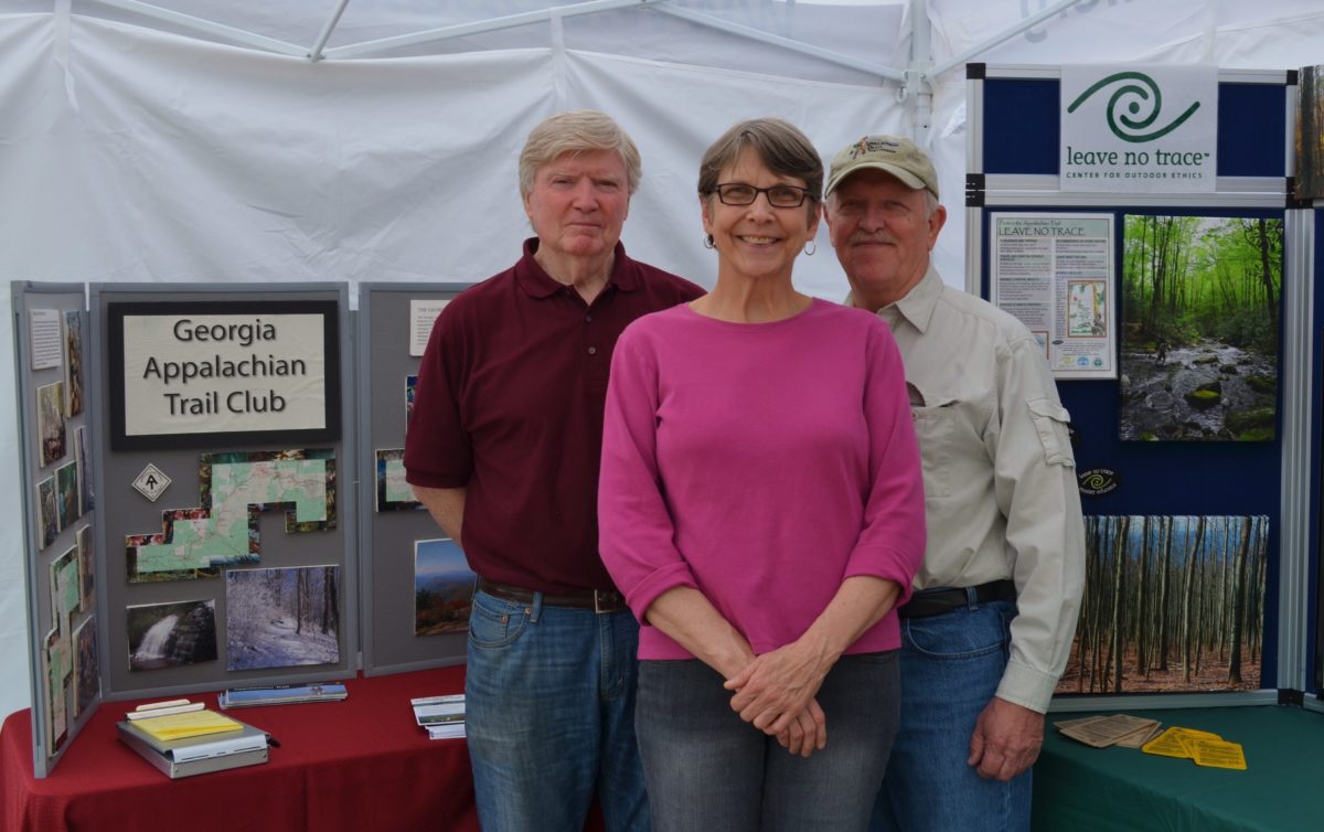 Georgia Appalachian Trail Club representatives (L-R) Don Converse, Claire Danielson & Joe Boone at Dahlonega Trail Fest 2014. ~~ Photograph by Robert Sutherland