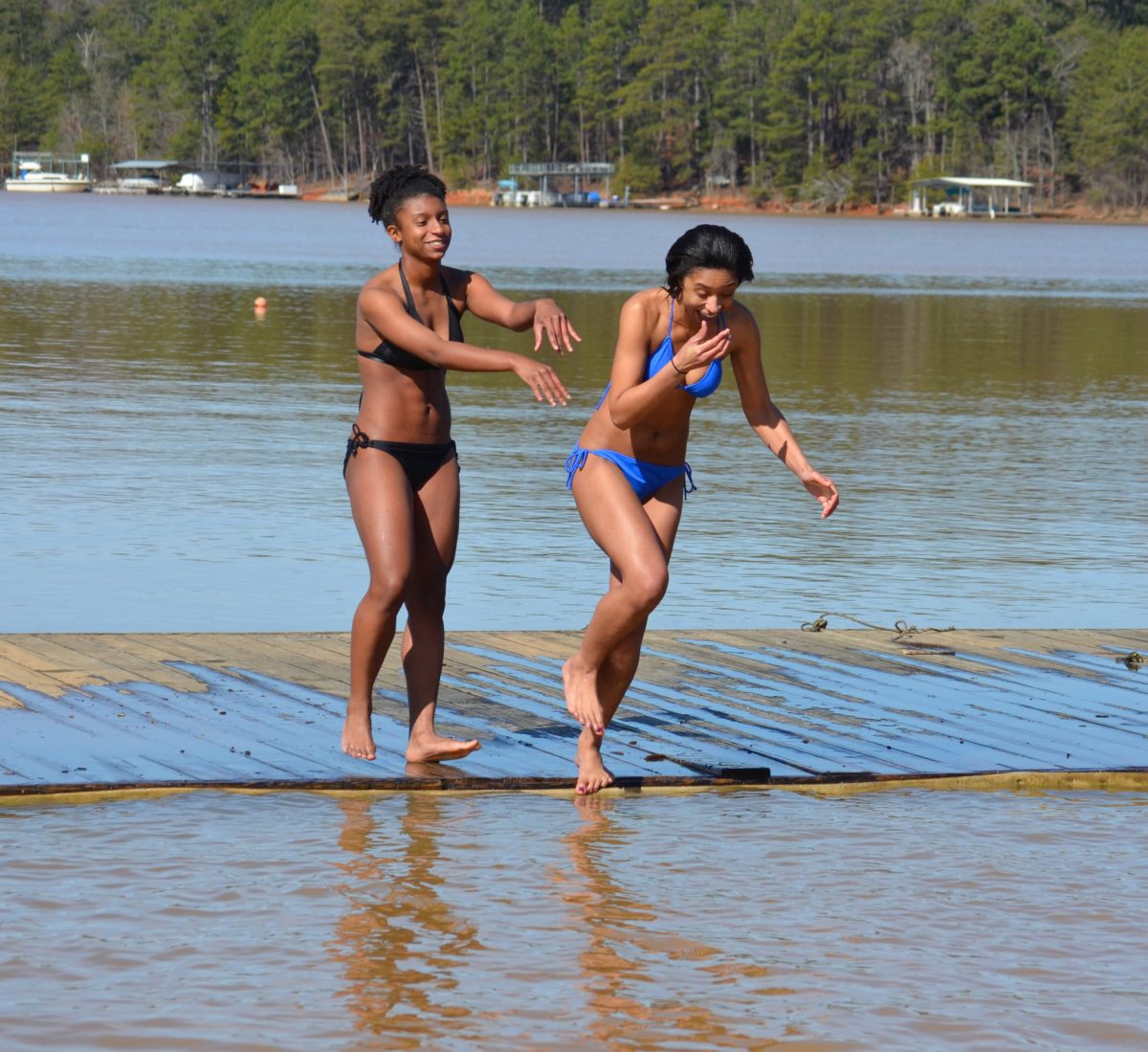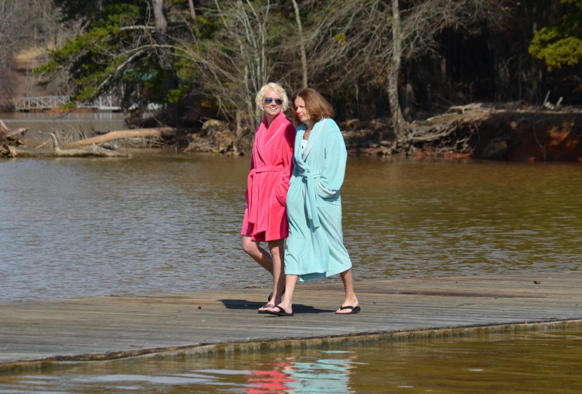 Sure, we just thought two ladies happened to be out for a walk in their bathrobes on the docks at the Lanier Canoe & Kayak Club on a cold afternoon in February.