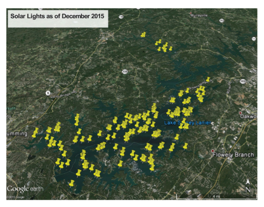 The Lake Lanier Association (LLA) April newsletter shares an update on their brilliant idea to place blinking, solar-powered navigation lights at crucial points around Lake Lanier.