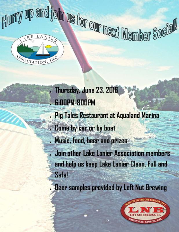 The Lake Lanier Association Member Social on June 23rd isn’t just for members, it’s for everyone who loves the lake and wants to see it safe, clean and full.