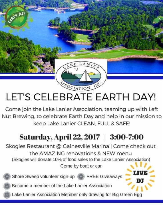 Let’s party for a good cause on Saturday, April 22, 2017 from 3-7 or so! If you’re scheduled to go into work, ask if you can get paid time off to commemorate Earth Day with the friendly members of the not-for-profit (but definitely for-fun) Lake Lanier Association.