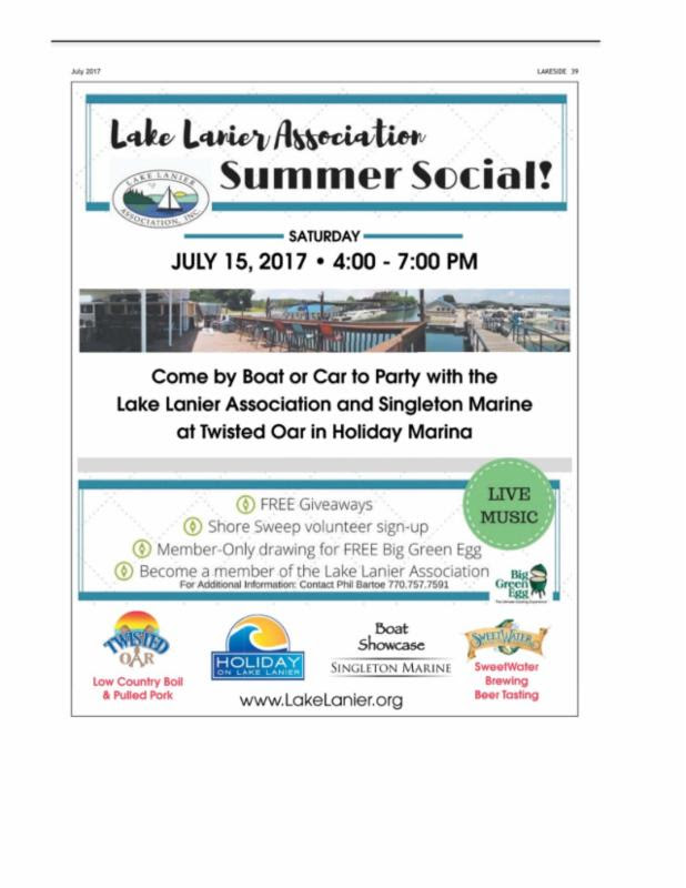 Our pals with the Lake Lanier Association (LLA) perform many boring and tedious labors on our behalf. They rid the lake of scummy old boat wrecks and they pick up enough garbage every year to fill half the sinkholes in Florida. When their work is done they gather together for events like their Summer Social on July 15th at Twisted Oar at Holiday Marina.