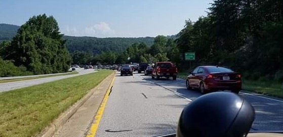 Our pals with the Habersham County Sheriff’s Department — who supplied the photo below showing clogged traffic near Tallulah Falls on the road that I-985 turns into when it stops being I-985.