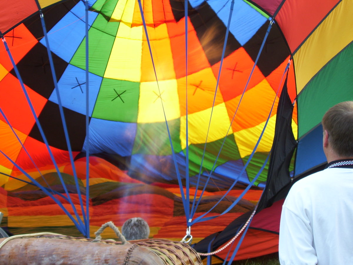 Balloons (ready?) go in the same direction as the wind, and at the same speed. Skilled pilots use propane heaters to inflate their crafts to go up. Each balloon carries one 40-gallon tank, which lasts about four hours. They open flaps to let air out and descend.