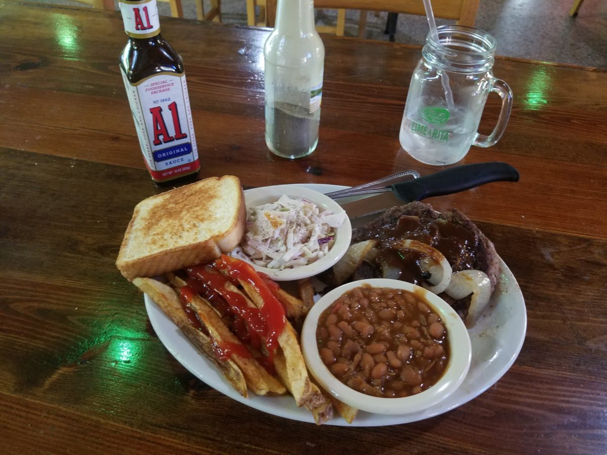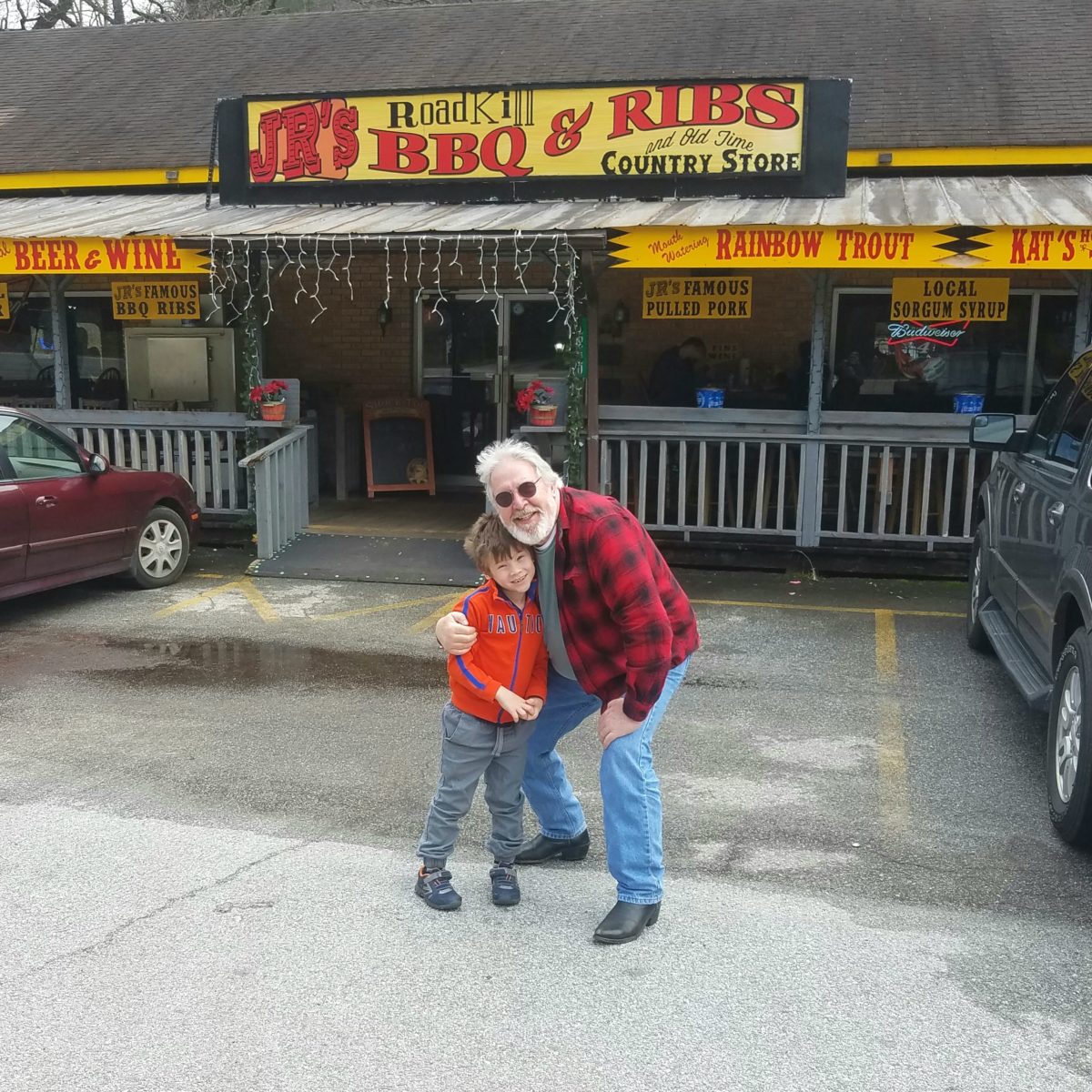 After a hot day thrashing my motorcycle — Grasshopper, The Humble Ninja — up, down and around the twisty roads of North Georgia, I was tired, ripe, thirsty and hungry. As I descended from the mountains, an oasis appeared on the horizon: JR’s RoadKill BBQ & Ribs, near Turners Corner, north of Cleveland.