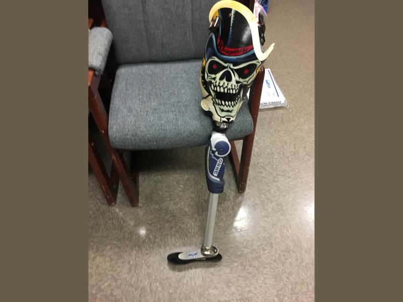 Not just any prosthetic leg, mind you. This one also has a face scary enough to knock you off your feet.