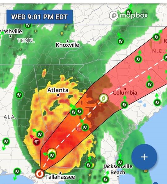 Hurricane Michael entered Georgia around 5 PM as a Category 3 storm. I heard of one report of a tornado watch for Oakwood, Georgia, and saw another on The Weather Channel for Winder. We might not know the extent of damage in the southeast for days.